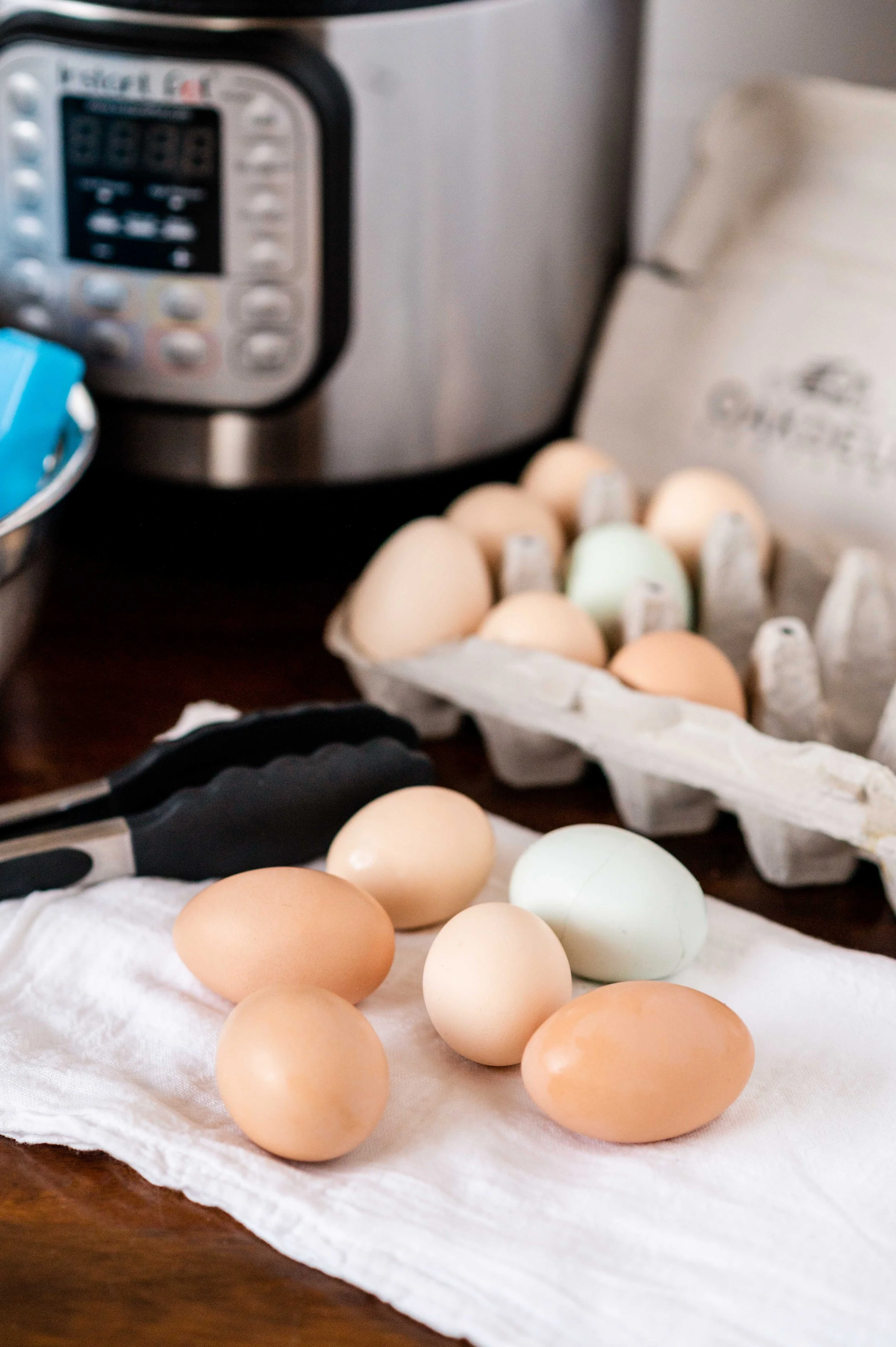 - Add trivet to Instant Pot & add however many eggs you are cooking.