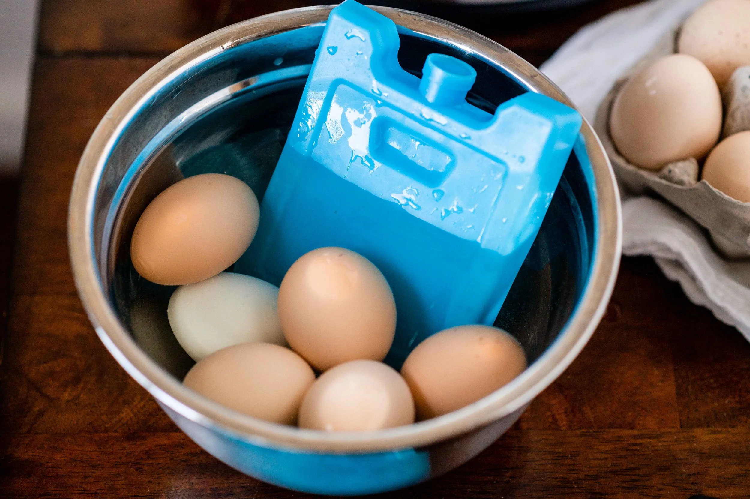 Now is the easiest time to peel the eggs! Especially if they’re fresh eggs. Burt they still peel without much fuss after being refrigerated.
